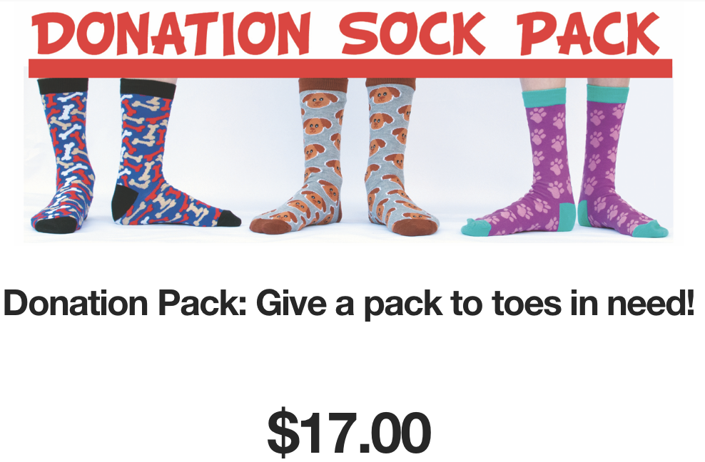 Example: You send a package of 3 pairs to Marty Indian School for $17. Three children receive socks, and LFC receives $8.50.